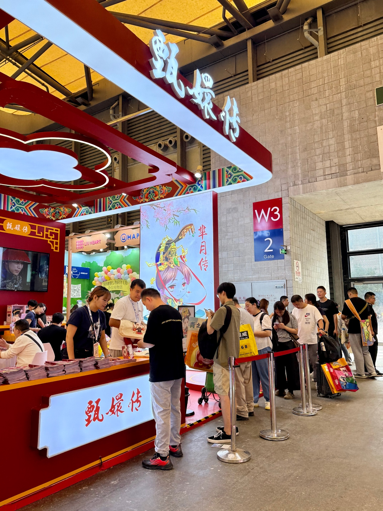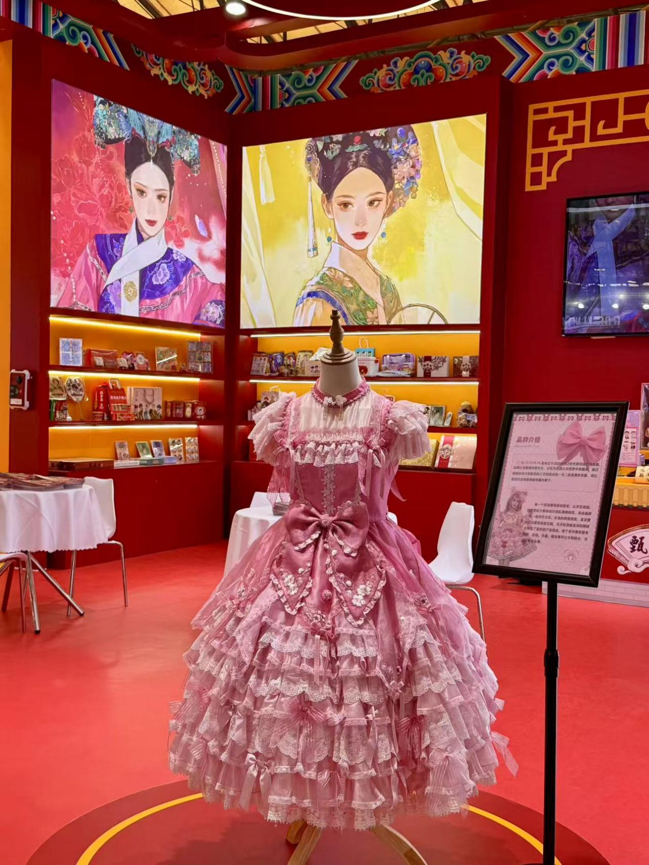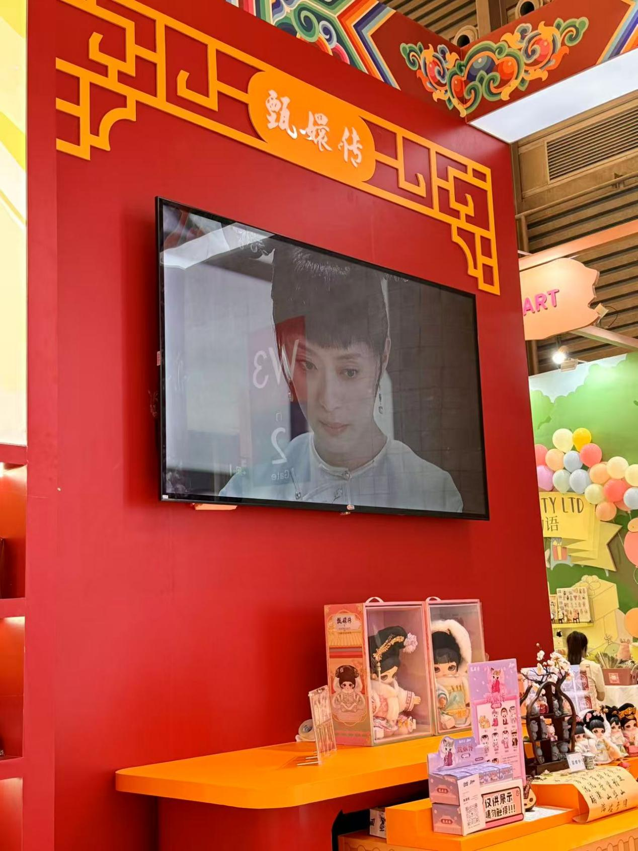 本次乐视展位以“经典IP+潮流创新”为设计理念,打造了兼具观赏性与互动性的展示空间。核心展区聚焦《甄嬛传》IP,通过“宫廷美学沉浸式体验区”的经典场景,让观众仿佛“穿越”到剧集中;周边展示区则陈列了覆盖多品类的联名衍生品,直观呈现IP商业化的广度与深度——花与珍珠匣联名的“惊鸿舞”Lolita裙装,以百万针绣花工艺复刻剧中服饰细节;锦鲤拿趣“名场面盲盒”,凭借高度还原的角色造型与剧情彩蛋,成为年轻粉丝驻足打卡的热门展品。此外,美妆日化、数码配件、茶饮、游戏等跨界衍生品的集中亮相,全面彰显了《甄嬛传》IP对全场景消费需求的覆盖能力。